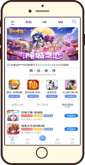 BT狗游戏官网为玩家提供好玩、省钱、服务好、玩家交流畅快的手游平台、全网首家BT手游、变态手游、折扣手游平台,上线送满级VIP,无限元宝,变态爆率,GM特权,BT手游,伴你游!!!
